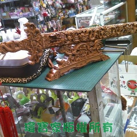 草-木雕桃木劍附座 如圖所示