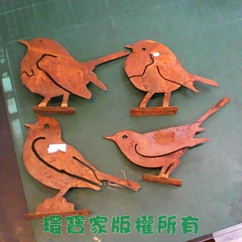 草-生鏽小鳥園藝裝飾4入 如圖所示