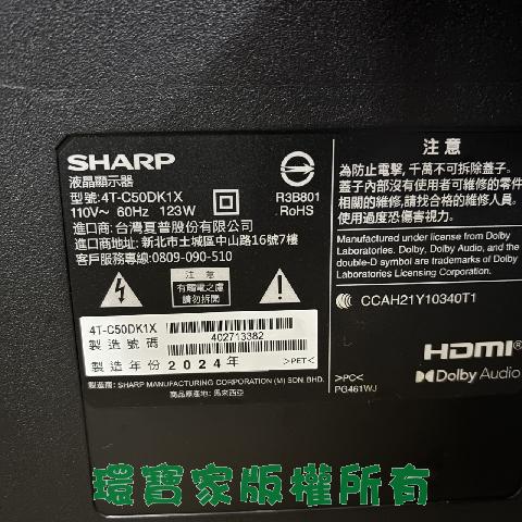 草-夏普50吋電視/保固到2027